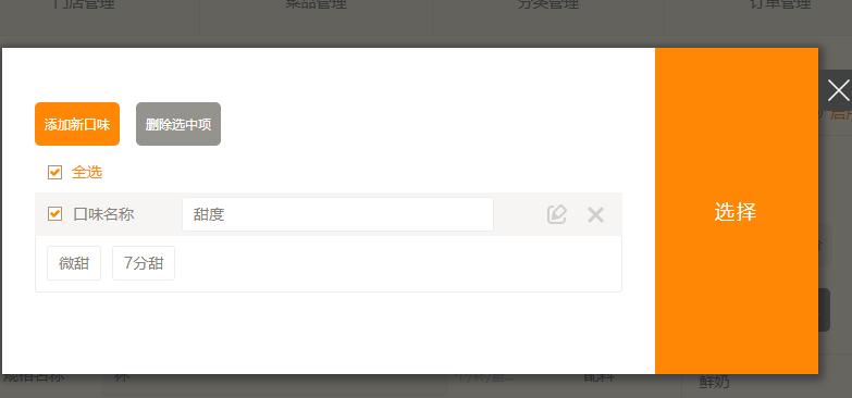 2.点击“菜品管理”添加菜品,添加菜品时有两种选项,一个是“单品”,另一个是“套餐”,当点击“套餐”时,我们选择之前添加好的单品进行组合即可;当添加菜品时,我们也可以给该菜品添加“口味”以及“配料”,同时我们也可以给该菜品进行“规格”设置,如“大杯”“小杯”等,在前端添加菜品时都会体现出来,填写完成后点击保存即可,如图所示: